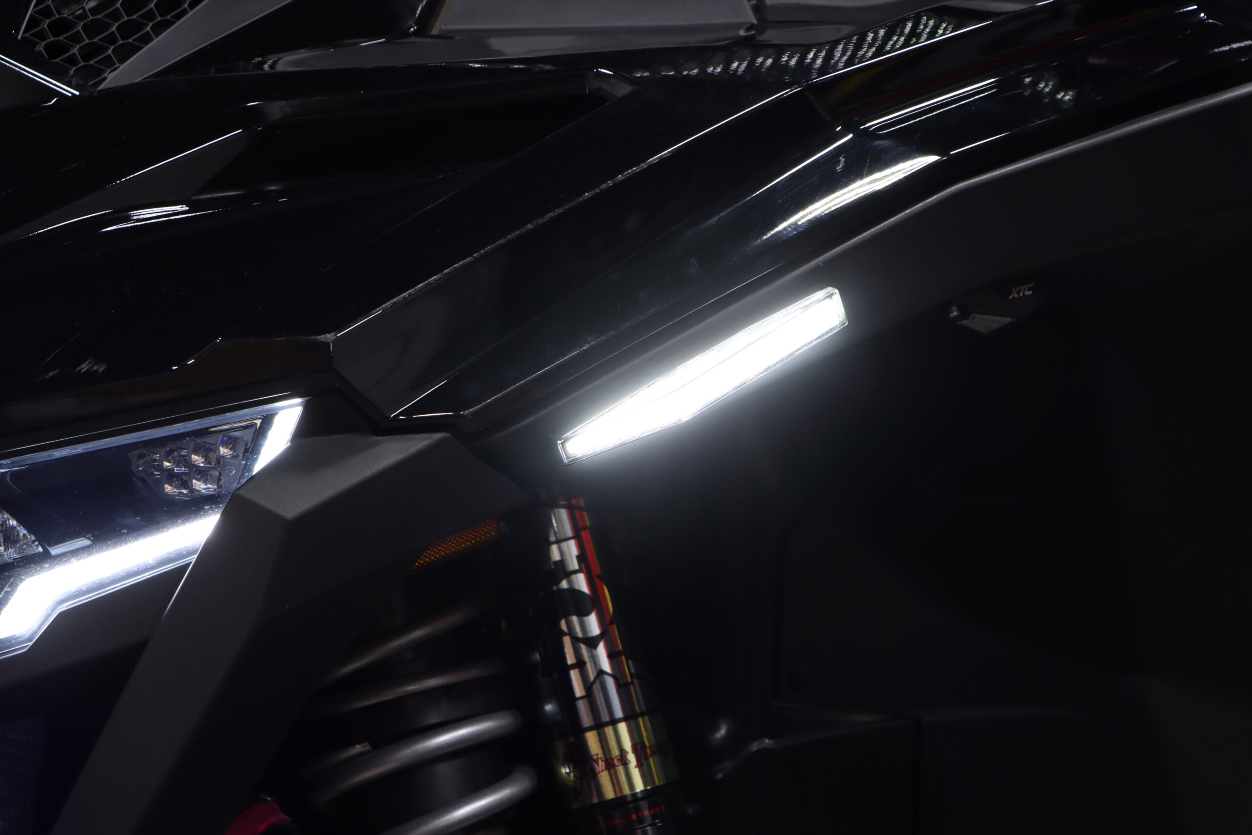 Also included in our Self-Canceling CFMOTO UFORCE U10 Pro turn signal kit is a ‘Hazard/Horn’ rocker switch. Pressing the top ‘Hazard’ side of the actuator will turn on the hazard lights, pressing it again deactivates them. Furthermore, pressing the lower portion of the custom rocker switch will activate the included street legal FIAMM horn. Each ATS has a vehicle-specific harness that plugs inline with the rear factory taillight harness. The CFMOTO UFORCE U10 Pro Turn Signal Kit includes a custom front harness that integrates into the factory headlights and uses the OEM amber blinker lights on front and back.